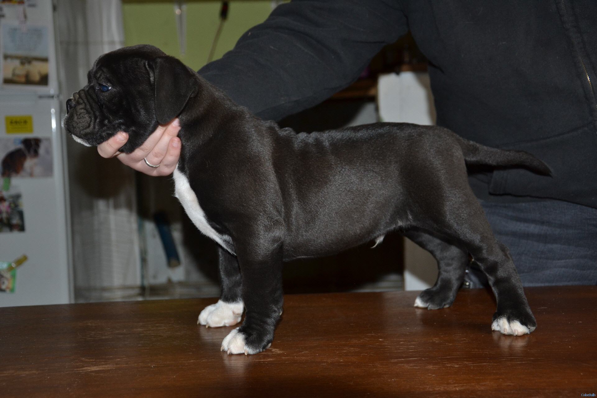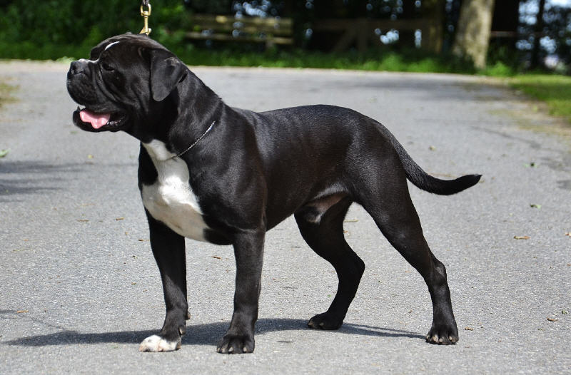schwarz, 4 weiße Pfoten, weißer Hals und Brust
